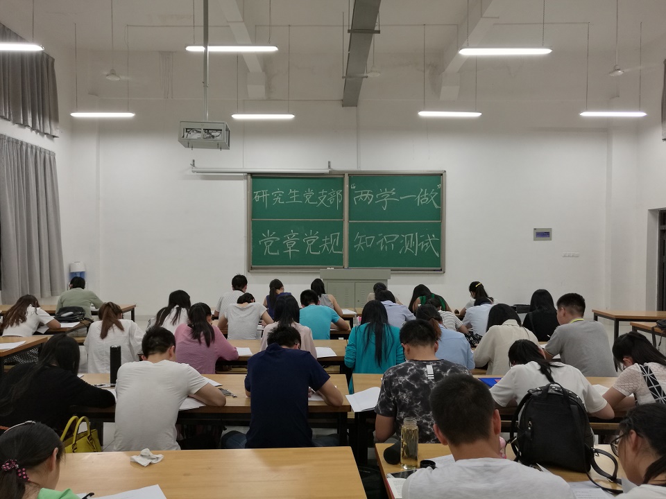 近日,根据研究生党支部“两学一做”学习教育的安排,为检验研究生党员前段集中学习和个人自学的学习效果,研究生党支部开展了党章党规知识测试,测试内容涵盖党章、党规、党的历史和习近平总书记系列重要讲话,题型包括填空题、选择题、判断题和简答题。