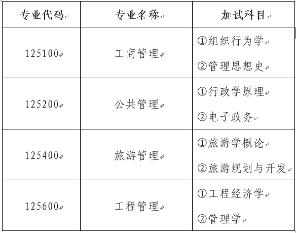 根据教育部《2025年全国硕士研究生招生工作管理规定》(教学〔2024〕4号)要求,现对湖南工商大学2025年硕士研究生招生简章进行补充说明:以同等学力身份(以报名时填报的信息为准)报考我校125100工商管理硕士、125200公共管理硕士、125400旅游管理硕士和125600工程管理硕士的同等学力考生,在复试中须加试两门与报考专业相关的本科主干课程。加试方式为笔试。具体科目如下: