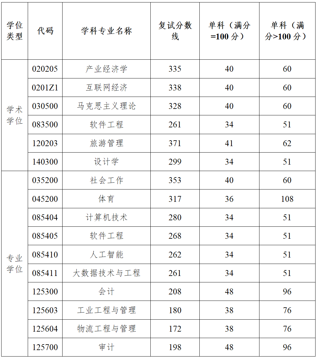 (一)学科专业复试分数线